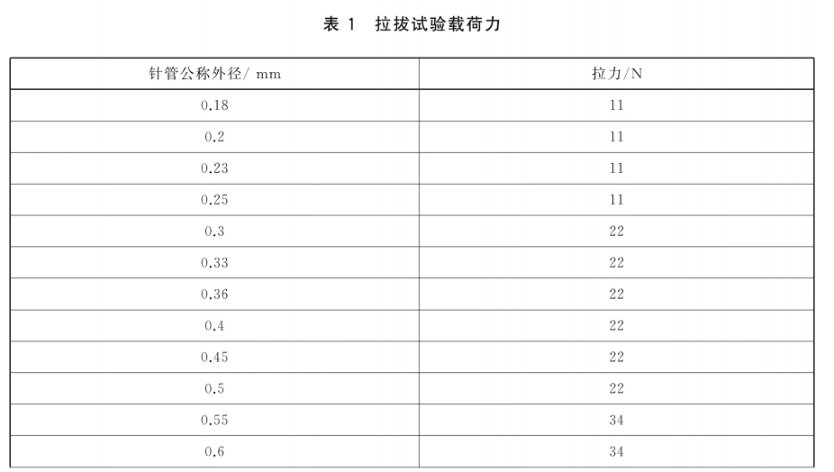 按标准表 1 规定载荷,设置仪器无冲击拉拔模式,拉力方向与针座拔出方向一致;